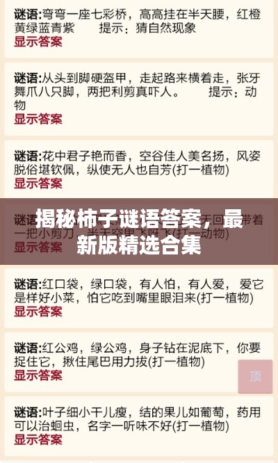 柿子作为中国传统文化的象征之一,不仅因其色泽鲜艳、口感独特而广受欢迎,还因其深厚的文化内涵而备受推崇,谜语作为一种富有挑战性的语言游戏,深受人们的喜爱,本文将结合柿子的特点,为大家呈现一系列最新的柿子谜语答案,让我们一起感受谜语的魅力,领略柿子的风采。