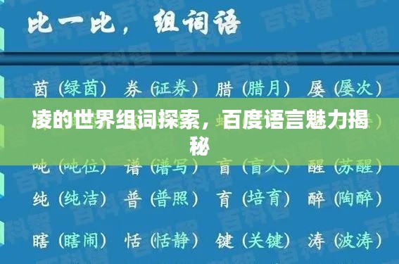 在信息技术的时代,搜索引擎已成为我们获取知识和信息的重要途径,当我们需要在浩如烟海的语言中寻找灵感,或是想要了解某个字的多种含义和用法时,百度等搜索引擎就如同一位智慧的长者,总能为我们带来意想不到的收获,我们就以“凌”字为例,通过百度一下,探索其丰富的组词世界。