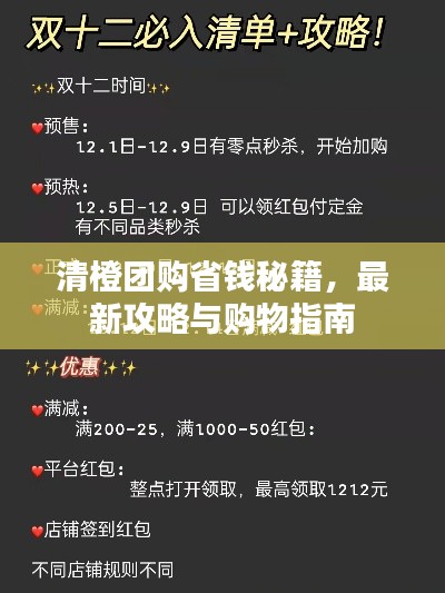 随着互联网的发展,线上购物已成为人们日常生活中不可或缺的一部分,团购作为一种新兴的购物方式,以其优惠的价格和丰富的商品种类吸引着越来越多的消费者,清橙团购作为业内知名品牌,为消费者提供了大量优质团购商品,本文将为大家分享清橙团购的最新攻略,帮助大家在购物过程中省钱又省心。