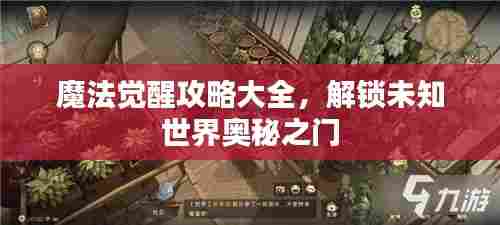 随着游戏产业的蓬勃发展,越来越多的游戏作品涌现出来,其中不乏一些充满神秘色彩的游戏,我们将为大家带来关于“魔法觉醒”的最新攻略,帮助大家探索这个充满未知的世界。