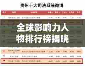 全球范围内,总有一些人物因其卓越的成就、深远的影响力和独特的个人魅力而备受瞩目,他们活跃在政治、商业、科技、文化等各个领域,以其独特的智慧和勇气推动着世界的进步,我们将为您揭晓当前的世界重磅人物排名。