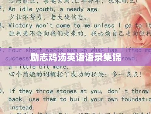 励志语录,不仅仅是一句话的简单陈述,更是一种情感的传递,一种力量的汇聚,以下为你呈现鸡汤英语励志语录大全,希望能为你的人生旅途加油助力。