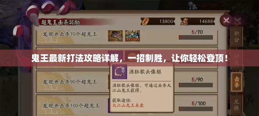 本文为大家带来了鬼王的最新打法攻略图,包括技能分析、装备选择、战术运用等方面,希望玩家能够认真阅读并实践,提高自己的游戏水平,建议玩家多与其他玩家交流,学习更多经验和技巧,享受游戏的乐趣。