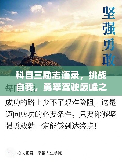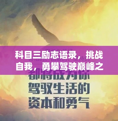 在驾驶学习的旅程中,科目三的挑战常常让人既兴奋又紧张,这不仅是对驾驶技能的考验,更是对意志和毅力的磨砺,面对这一重要阶段,让我们一起用励志语录激励自己,勇往直前,攀登驾驶之路的高峰。