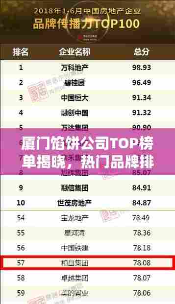 厦门,这座美丽的海滨城市,以其独特的地理位置和人文环境孕育出了众多优秀的食品企业,厦门馅饼作为当地的特色美食,受到了广大消费者的喜爱,本文将为您介绍厦门馅饼公司的排名,带您了解这些企业的风采。