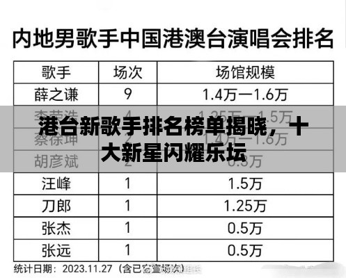 港台流行音乐产业一直是亚洲乐坛的重要组成部分,涌现出许多优秀的歌手,本文将介绍港台新歌手排名前十名,这些歌手以其出色的音乐才华和独特的艺术风格赢得了众多歌迷的喜爱。
