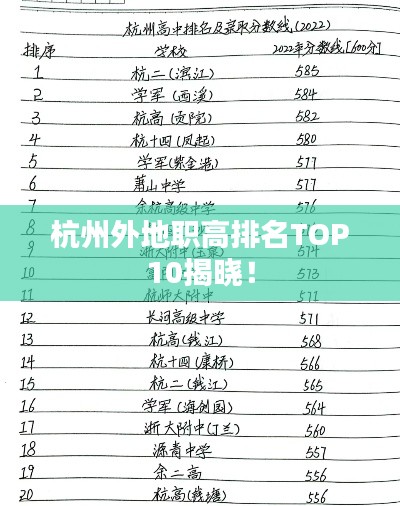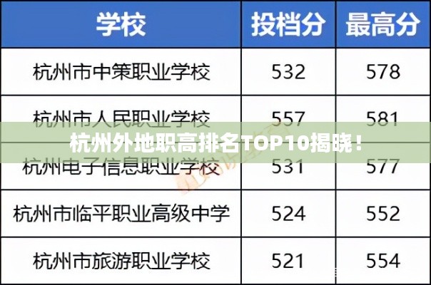 杭州,作为中国的经济重镇和文化名城,其职业教育也备受瞩目,本文将介绍杭州外地职高排名前十名,为广大职高学生和家长提供参考。