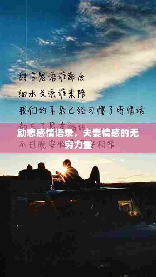 在生活的漫长旅程中,每一个人都需要一份励志的力量,让我们在困境中坚持,勇往直前,对于夫妻来说,感情励志语录更是他们共同面对生活挑战时的精神支柱,我们就来探讨一些关于夫妻感情的感情励志语录,分享那些能够激发我们内心力量的温暖话语。