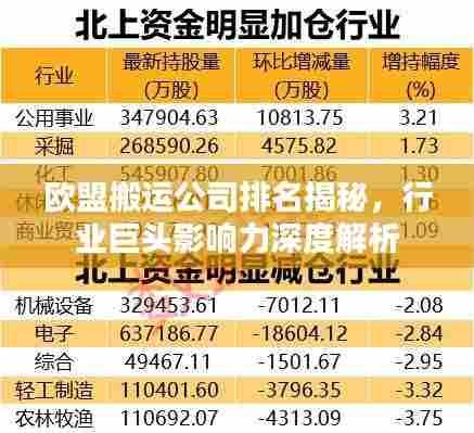 随着全球化和电子商务的飞速发展,跨国物流需求日益增长,欧盟作为世界经济的重要一环,其搬运公司的实力和影响力不容忽视,本文将探讨欧盟搬运公司的排名及其背后的因素。