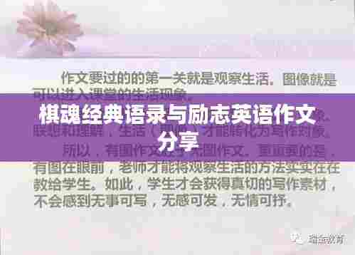 在浩瀚的文化海洋中,每一部经典作品都蕴含着深刻的智慧与哲理。《棋魂》不仅是一部深受喜爱的动漫作品,更是一部充满励志精神的杰作,许多经典语录都值得我们深思与学习,本文将结合《棋魂》中的励志语录,探讨其给我们的启示,并以此为灵感,撰写一篇励志英语作文。