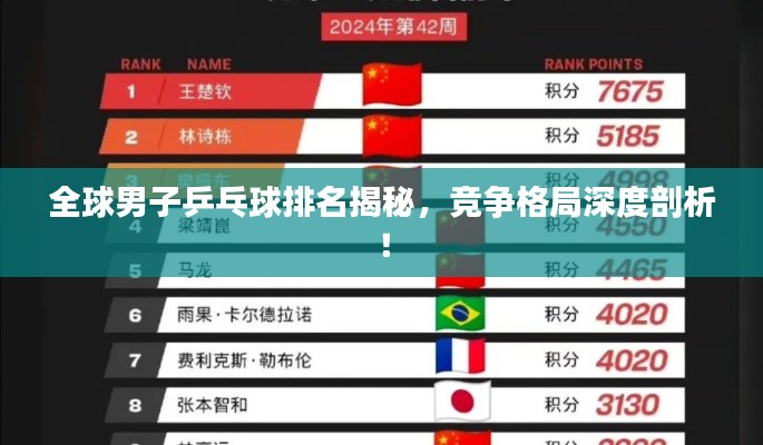 在世界乒乓球运动中,男子比赛历来是竞争最激烈、关注度最高的领域之一,各国选手在乒乓球赛场上奋力拼搏,展现出了极高的竞技水平,本文将围绕“世界男子乒乓球排名”这一主题,探讨当前世界男子乒乓球的竞争格局及主要选手的排名情况。