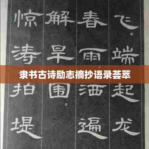 在快节奏的现代社会中,我们时常面临各种挑战和压力,而隶书古诗摘抄语录励志,正是给我们提供了一面镜子,让我们回顾历史,汲取智慧,找到前进的动力,这些古老的诗句和隶书的艺术形式相结合,让我们在欣赏艺术之美的同时,也感受到了古人的智慧和勇气。