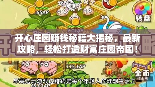 开心庄园作为一款模拟经营类游戏,吸引了众多玩家的加入,在游戏中,玩家可以通过种植、养殖、交易等方式赚取虚拟货币,体验庄园赚钱的乐趣,本文将为大家分享最新的开心庄园赚钱攻略,帮助玩家轻松打造属于自己的财富庄园。