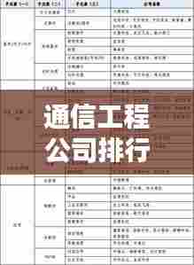 随着信息技术的飞速发展,通信工程行业在全球范围内呈现出蓬勃生机,在这个竞争激烈的市场环境中,各大通信工程公司的表现尤为引人注目,本文将探讨全球通信工程公司的排名及其影响力,以期为读者提供行业参考。