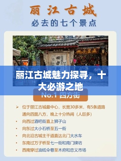 丽江古城,以其深厚的历史底蕴、独特的民族风情和美丽的自然风光吸引着无数游客的目光,在这座充满魅力的城市里,有许多地方因其独特的魅力而备受推崇,我们将为您揭晓丽江古城排名前十名的地方,带您走进古城的魅力之旅。