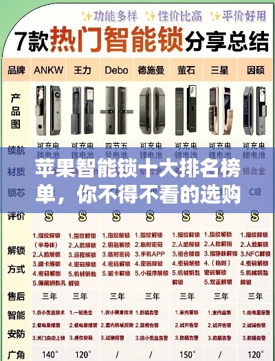 随着科技的飞速发展,智能锁已经成为了现代家庭和企业安全的重要保障,在众多智能锁品牌中,苹果的智能锁因其卓越的品质和创新的技术而备受消费者青睐,本文将为您介绍苹果智能锁排名前十名,让您更好地了解这一领域的优秀产品。