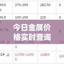 随着全球经济的不断发展,金属价格成为众多行业关注的焦点,对于从事制造业、建筑业、贸易等行业的朋友来说,了解金属价格的最新动态至关重要,本文将为您带来今日各种金属价格的最新查询信息,让您掌握市场动态,做出更明智的决策。
