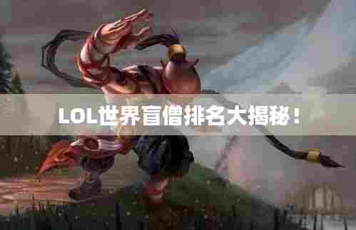在充满竞技激情的《英雄联盟》(LOL)世界里,盲僧李青这一英雄以其独特的战斗风格和强大的技能,成为了许多玩家钟爱的角色,在世界各地的游戏中,总有一些出色的玩家能够将盲僧这一角色发挥到极致,本文将为你揭示LOL世界盲僧排名,带你认识那些在游戏世界中独领风骚的盲僧高手。