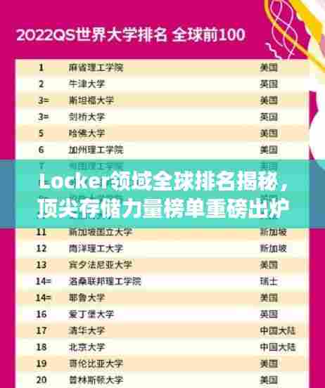随着科技的飞速发展,数据存储需求日益增长,locker作为存储领域的重要角色,其世界排名备受关注,本文将为您详细介绍locker的世界排名及其背后的故事。