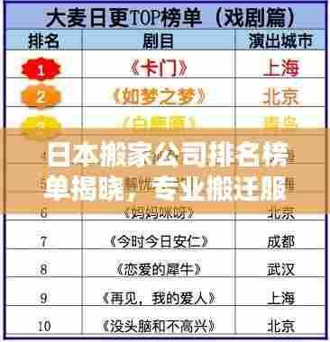 日本作为一个经济发达的国家,人口众多,市场繁荣,搬迁需求也随之增长,本文将介绍日本市场上几家备受认可的搬迁公司,并对其进行排名。