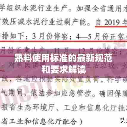 熟料作为工业生产中的重要原料,其使用标准的规范与要求对于保障产品质量、推动工业发展具有重要意义,生产企业应严格按照最新规范要求进行生产和管理,确保熟料的质量稳定可靠,相关部门也应加强监管力度,推动熟料使用标准的全面实施。