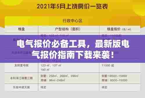 在现代社会,电气工程的地位日益凸显,无论是城市建设还是工业发展,都离不开电气技术的支持,对于从事电气行业的人士来说,掌握最新的电气报价知识是十分重要的,我们就来介绍一款能够帮助你轻松进行电气报价的工具——电气报价指南最新版。