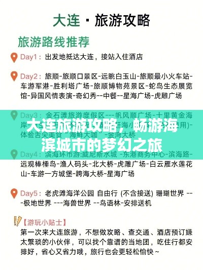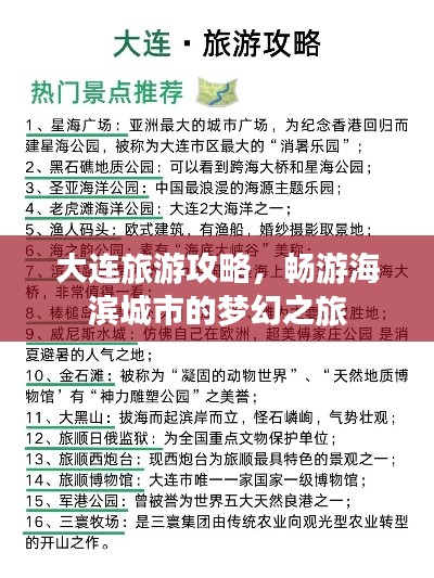 大连,这座美丽的海滨城市,以其丰富的自然景观、历史遗迹和美食文化吸引着无数游客,无论您是寻找浪漫的海滨风光,还是探寻历史的足迹,大连都能满足您的需求,本篇攻略将带您领略大连的精华,让您在旅途中收获满满的美好回忆。