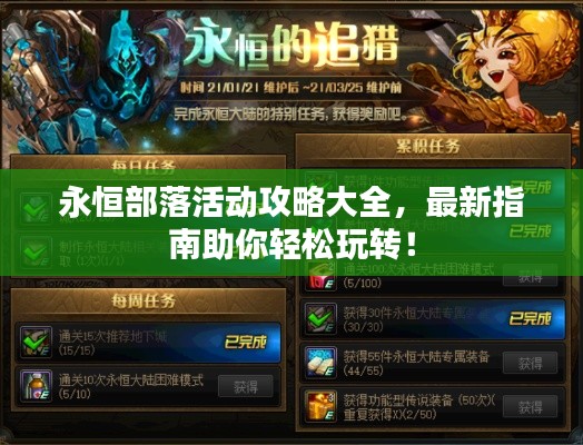 随着游戏世界的日新月异,永恒部落作为一款备受欢迎的在线游戏,不断推出新的活动以丰富玩家的游戏体验,为了帮助广大玩家更好地了解和参与最新活动,本文为大家带来永恒部落活动攻略最新指南。