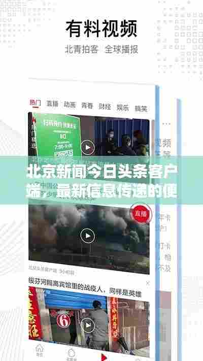 随着科技的快速发展,新闻资讯的获取方式也在不断地更新迭代,北京新闻今日头条客户端作为一款集合了最新消息、时事热点、本地新闻等多元化内容的新闻客户端,已经成为许多用户获取新闻信息的重要途径,本文将介绍北京新闻今日头条客户端的特点及其在现代社会中的重要作用。