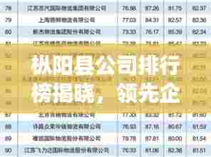 枞阳县的公司排名反映了该地区的产业发展状况,制造业、服务业等行业的企业在技术创新、市场拓展等方面表现出色,为当地经济发展注入了活力,随着技术的不断进步和市场的不断变化,枞阳县的新兴产业也在迅速发展,为当地经济发展提供了新的动力。