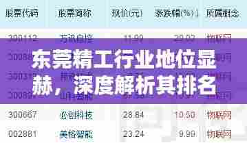 转载请注明来自浙江大溪洋泵业制造有限公司,本文标题:《东莞精工行业地位显赫,深度解析其排名与实力表现!》