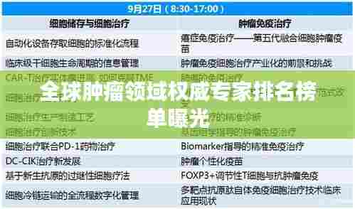 在医学领域,肿瘤学一直是备受关注的重要分支,随着科技的不断进步,人们对于肿瘤的研究和治疗手段也在日益更新,在这样的背景下,涌现出了一批杰出的肿瘤学家,他们为世界肿瘤学的发展作出了巨大贡献,本文将为您介绍世界肿瘤领域的名人排名。