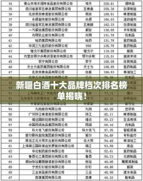 就是新疆白酒档次排名前十名的介绍,这些美酒不仅具有独特的口感和精湛的酿造工艺,更是新疆文化和历史的瑰宝,它们以其独特的魅力吸引着越来越多的消费者,也为新疆的酿酒业发展做出了重要贡献,希望这篇文章能让你更好地了解新疆的白酒文化,也希望能为你选择美酒提供一定的参考。