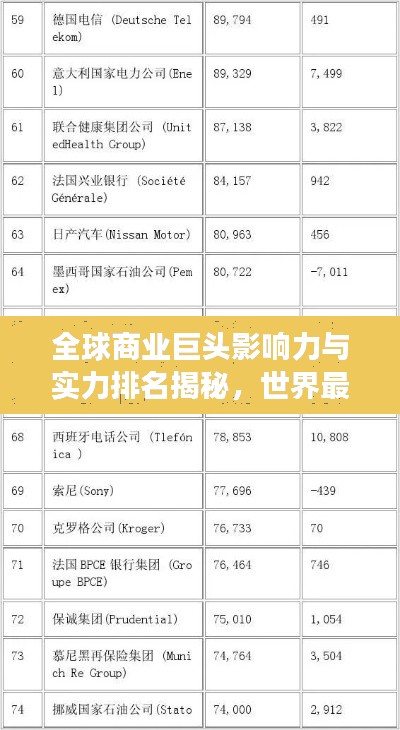 随着全球化的不断发展,商业竞争日趋激烈,各大企业的商业实力与影响力也在不断提升,本文将为您揭示世界最大商业排名,带您了解全球商业巨头的影响力与实力。