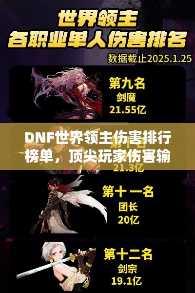 DNF世界领主伤害排名是衡量玩家实力的重要指标之一,玩家们通过不断提高角色实力、掌握战斗技巧和加强团队协作等方式,争取在领主伤害排名中取得好成绩,随着游戏的发展,领主伤害排名的竞争性将不断提高,玩家们需要不断努力,才能取得更好的成绩和荣誉。
