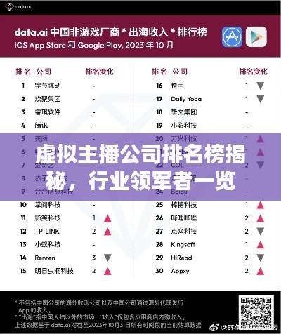 随着互联网的飞速发展,虚拟主播作为一种全新的社交媒体形式,逐渐受到广大网友的热烈追捧,虚拟主播公司如雨后春笋般涌现,它们以独特的魅力在竞争激烈的市场中脱颖而出,本文将为你带来虚拟主播公司的排名榜,探索这一新兴行业的领军者。