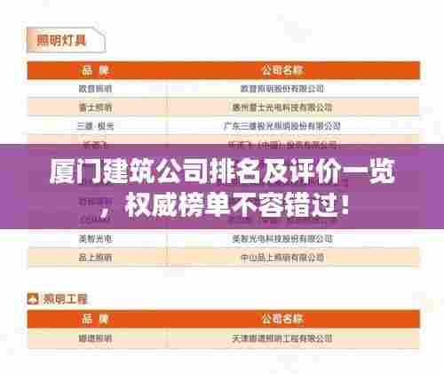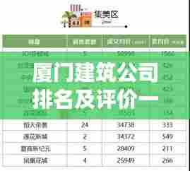 厦门,这座美丽的海滨城市,以其独特的地理位置和开放的经济政策吸引了众多建筑公司的目光,厦门的建筑公司在业界的排名如何呢?本文将为您详细解读厦门建筑公司的现状及其排名。