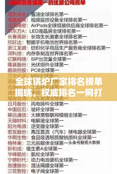 随着全球工业化的不断发展,锅炉行业也在不断进步,各地的锅炉厂家如雨后春笋般涌现,为全球各地的工业、能源、建筑等领域提供着重要的支持,在世界范围内,哪些锅炉厂家能够跻身排名呢?本文将为您揭晓世界锅炉厂家的排名情况。