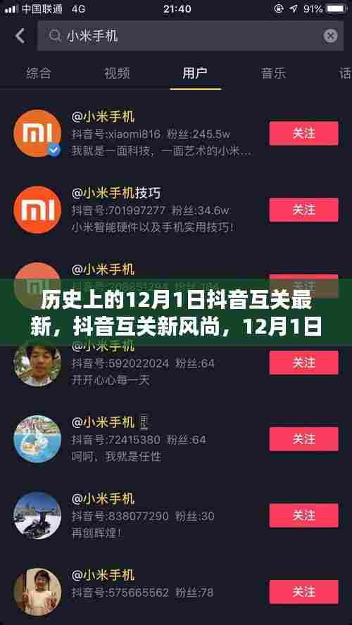 摘要:,,12月1日,抖音互关掀起新风尚,用户们在这一天与自然共舞,分享最新的互动方式和创意内容。这一天的抖音互关活动成为历史上一大亮点,吸引了众多用户的关注和参与。