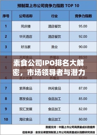 随着健康饮食观念的普及和素食主义的崛起,素食公司正逐渐成为资本市场的新宠,本文将围绕“素食公司IPO排名”这一主题,探讨当前市场上表现突出的素食企业,并分析其发展前景。