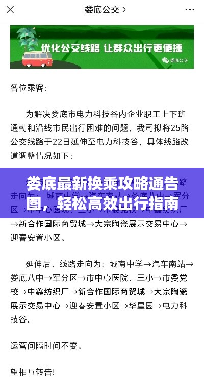 随着城市化进程的加快,公共交通在人们日常生活中的重要性日益凸显,娄底作为湖南省的重要城市,其公共交通系统的完善与便捷性对于市民和游客的出行至关重要,本文将结合最新通告图,为大家提供详尽的娄底换乘攻略,让您的出行更加便捷高效。
