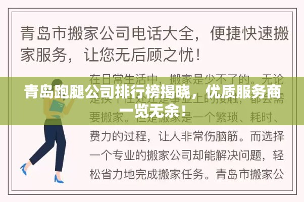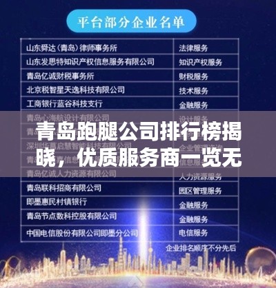 青岛作为山东省的经济中心之一,近年来发展迅猛,各种服务行业也应运而生,跑腿公司作为现代服务行业的代表之一,在青岛市场上逐渐崭露头角,本文将介绍青岛跑腿公司的排名,以便需要服务的市民能够选择到更加优质的跑腿公司。