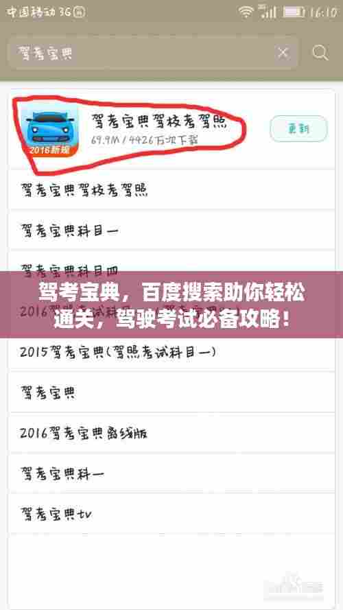 当我们打开百度搜索引擎,输入“驾考宝典”这一关键词时,会出现大量的相关资源,我们需要根据自己的需求进行筛选。