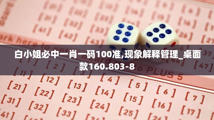 “白小姐必中一肖一码100准,现象解释管理_桌面款160.803-8”这个短语或许看起来有些不合逻辑,但这正展示了现象解释在我们日常生活中的重要性。在现代社会,我们经常被各式各样的信息所包围,这些信息有的清晰直接,有的则含糊不清。在这种情况下,现象解释的作用就显得尤为重要。它能够帮助我们理解那些看似混乱的信息背后的真实含义,让我们能够更加准确地把握事物的本质。