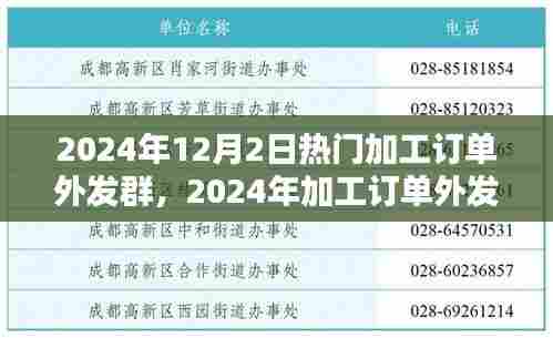 随着科技的飞速发展和全球化浪潮的推进,加工制造业迎来了前所未有的变革时代,在这个时代的浪潮中,2024年12月2日,一个名为“热门加工订单外发群”的社群悄然崭露头角,它不仅改变了加工制造业的传统模式,更在某种程度上引领了一个全新的行业风向标,本文将带您回顾这个社群背后的故事,探寻其重要事件、影响以及在特定领域或时代中的不可替代地位。