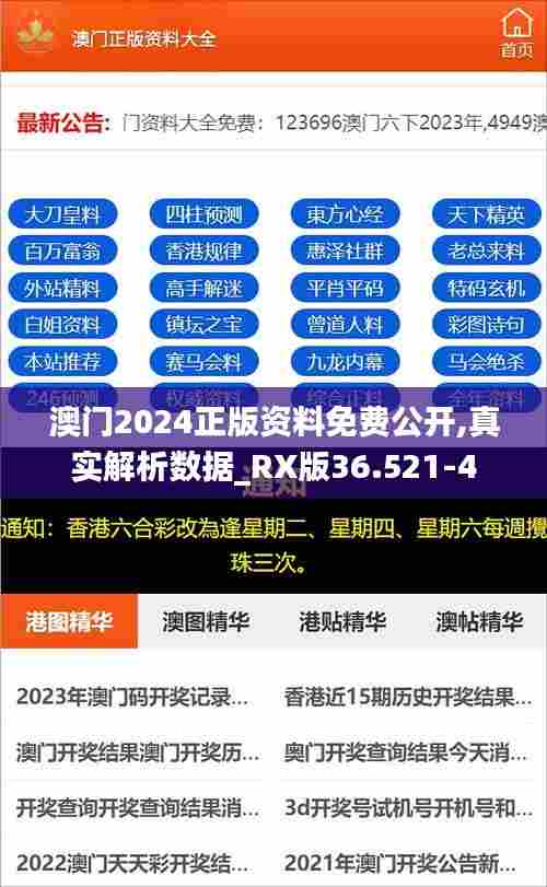 我们生活在一个信息爆炸的时代,每天都被海量的数据和资料淹没。在这种情况下,获取有用、有价值、最新的信息变得越来越困难。尤其是在澳门这个繁华的地区,每天都有大量的信息更新。然而,2024年澳门正版资料免费公开,为你提供了一个可靠的信息来源。这些资料覆盖了澳门各个方面,包括经济、政治、文化、教育等领域,为你提供了全方位的澳门信息。而且,这些资料都是最新的,能够让你及时了解澳门的最新动态。在这篇文章中,我们将详细解析这些澳门2024正版资料,为你揭示真实的澳门数据。