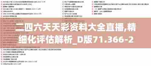二四六天天彩资料大全直播不仅提供了最新的彩票开奖信息,还包含了一整套的数据分析工具。例如,用户可以通过“D版71.366-2”版本的专业工具,深入了解每一张彩票背后的数据逻辑。用户可以利用这些工具从不同的角度分析彩票,从最可能的中奖号码,到一般趋势的变化,乃至于季节性的波动。通过这些精细化评估解析,彩民可以更加科学合理地做出投注决策。
