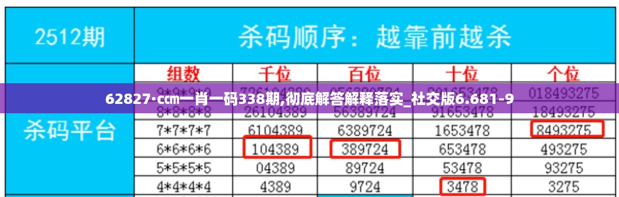 在数字时代的浪潮中,62827·c㎝作为一个复杂的统计单位,很难被大众所理解。它以其神秘的面貌出现在我们的日常对话中,尤其是在彩票和投资领域。社交版6.681-9,则是一个面向社交网络的软件版本号,这个版本号承载的是技术进步和用户体验的双重价值。本文将深入探讨这两个领域,并尝试将它们联系起来,以期为读者提供一个全面的解答和解释。