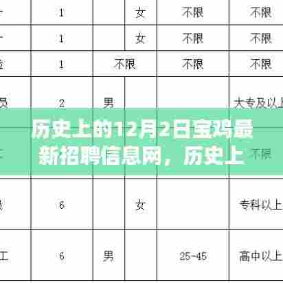 摘要:历史上的12月2日,宝鸡招聘信息网发布了最新招聘资讯,引领求职者踏上一场心灵的自然之旅。该网站提供丰富的招聘信息,涵盖多个行业和领域,为求职者提供了广阔的就业机会。