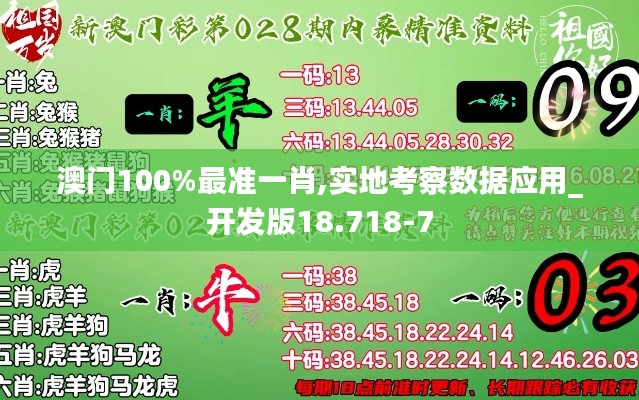 <h2>导言:澳门百分百最准一肖介绍 澳门,一个融合东西方文化的地方,以博彩业闻名于世界,吸引了无数游客的目光。在这片石灰石铺就的土地上,"澳门100%最准一肖"成为了博彩文化中的一个独特标签,这个概念意指的是那些在博彩行业中准确预测结果的技巧或方法。"实地考察数据应用_开发版18.718-7"是指一种基于实地考察和数据分析的预测开发版本,旨在提高预测的准确度。接下来,我们将深入探讨"澳门100%最准一肖"这一概念,以及"实地考察数据应用_开发版18.718-7"如何在这背后发挥作用。